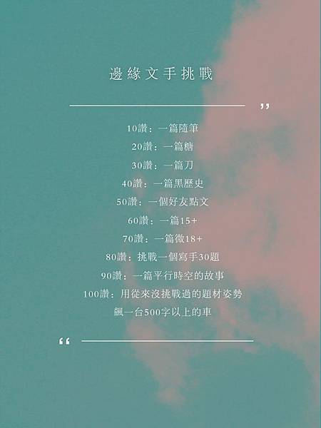 順便附上邊緣文手挑戰內容(找不到當初存的原圖,所以又做了一張)